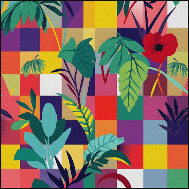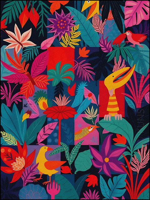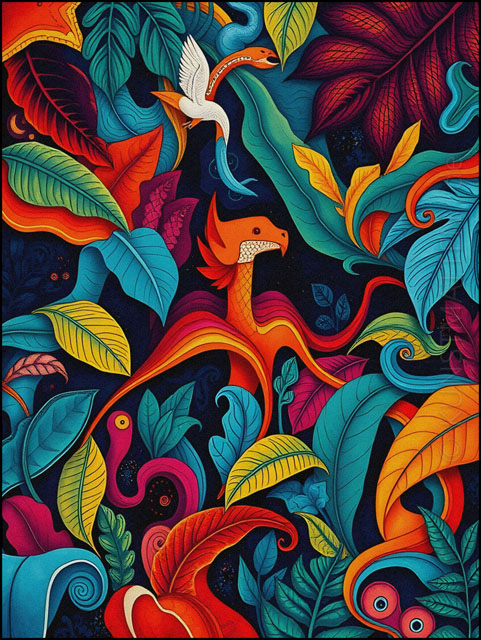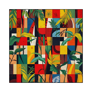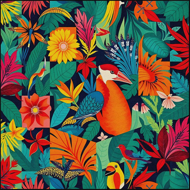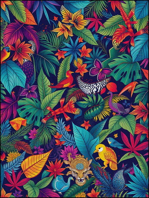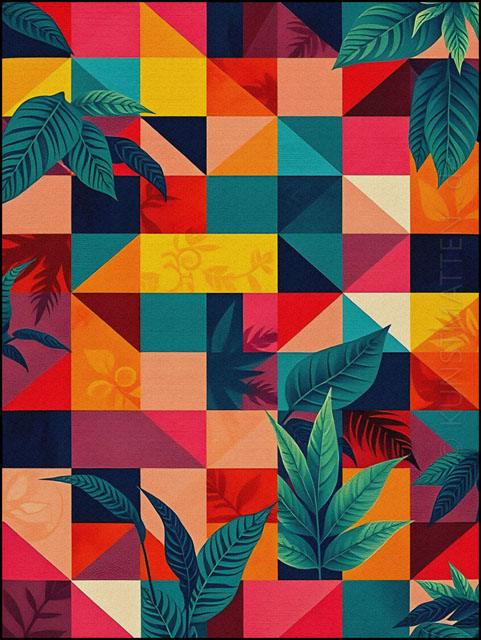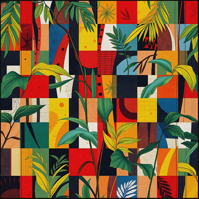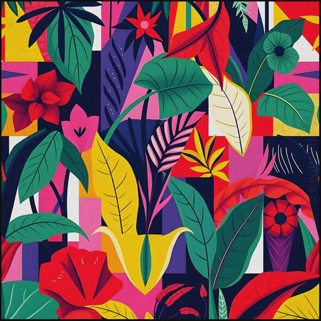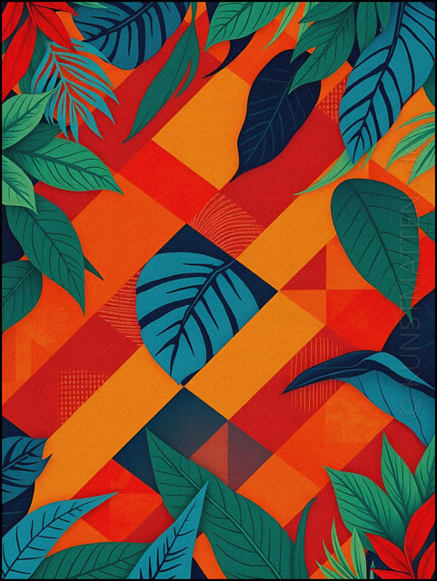 Bunte Native-Art trifft auf Dschungel-Vegetations Interpretationen.