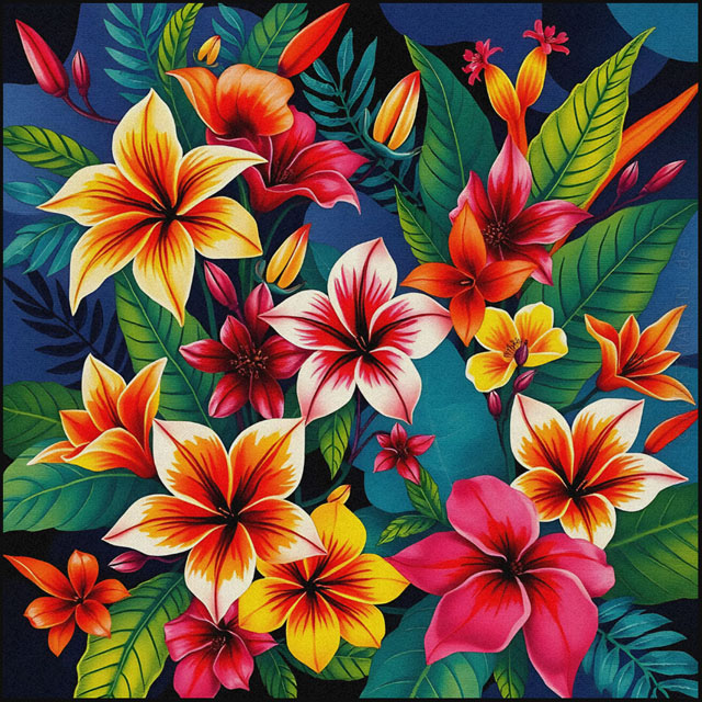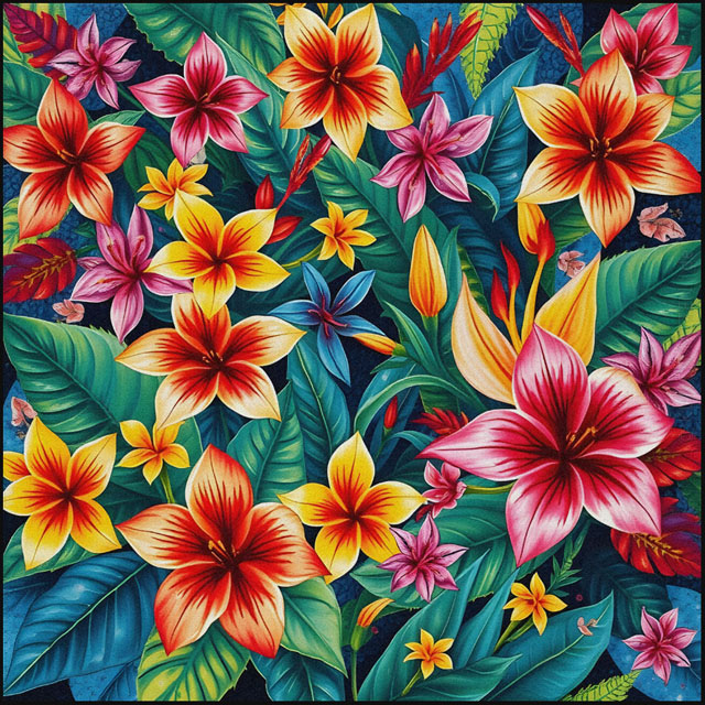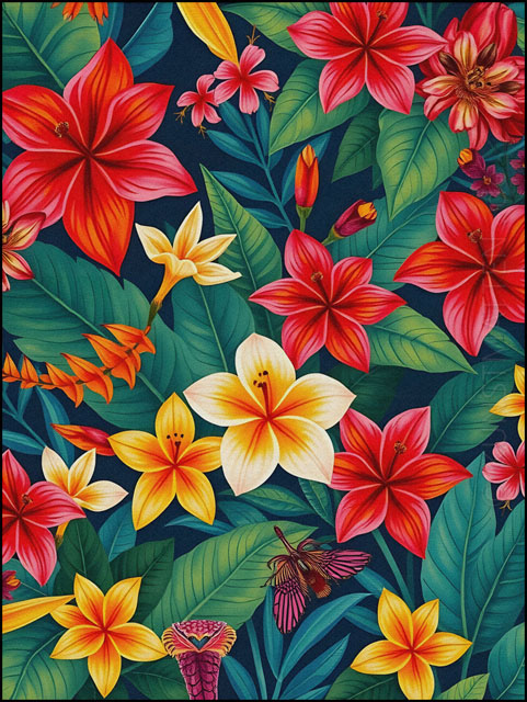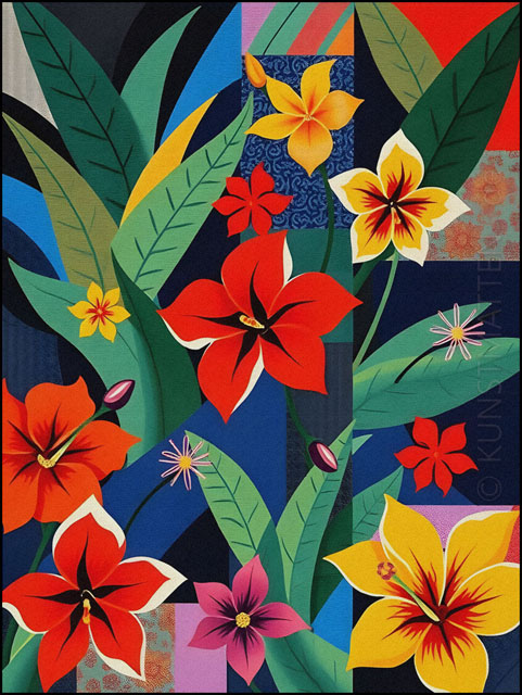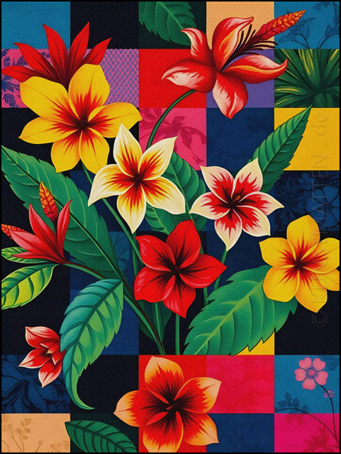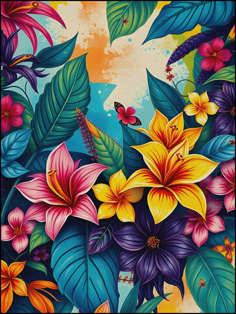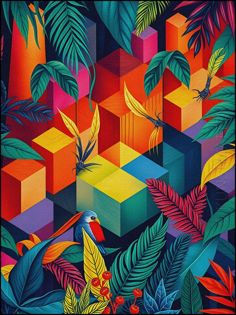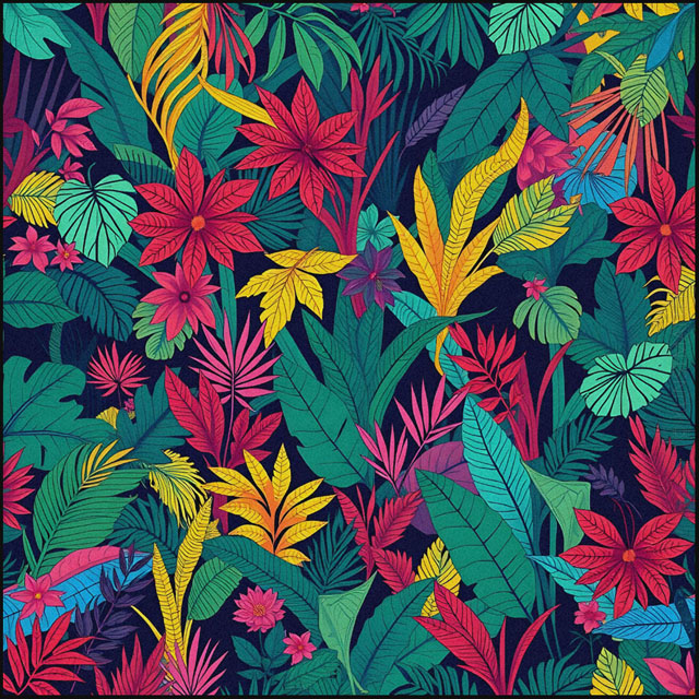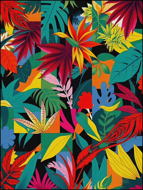 Bunte Native-Art trifft auf Dschungel-Vegetations Interpretationen.
