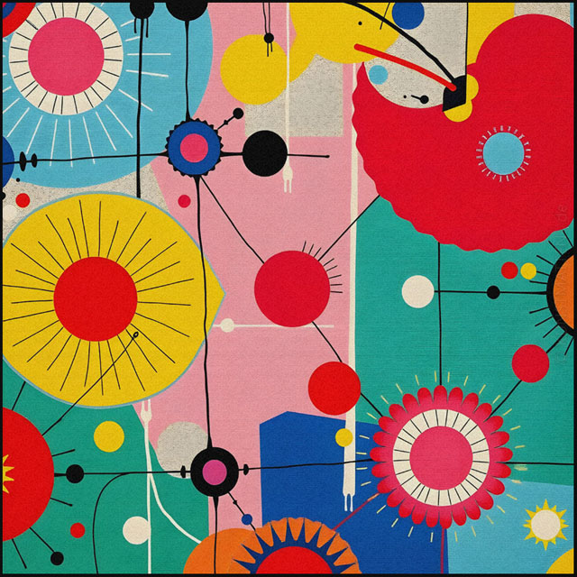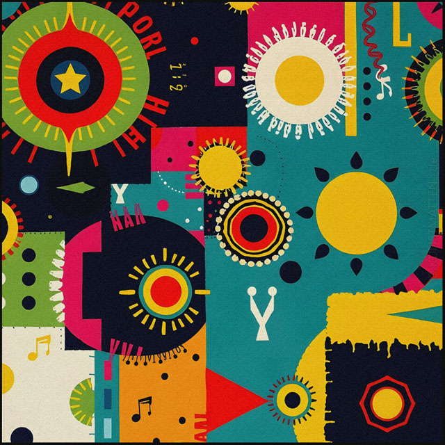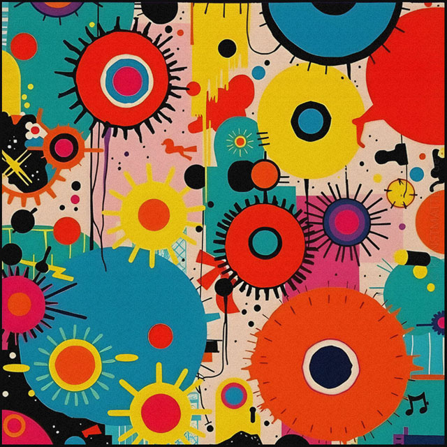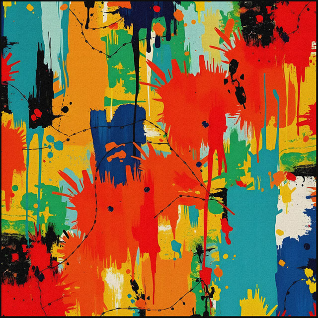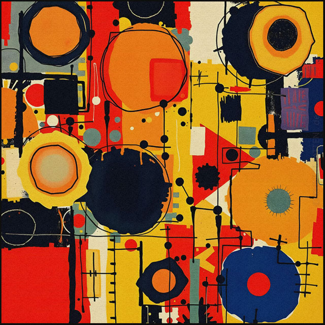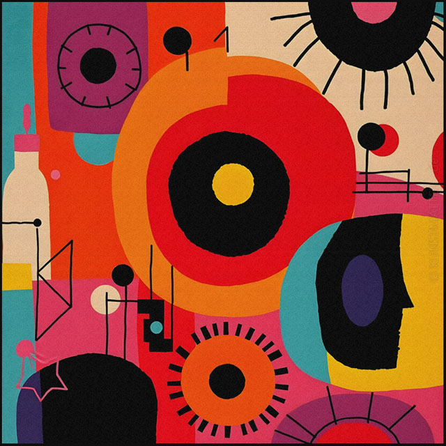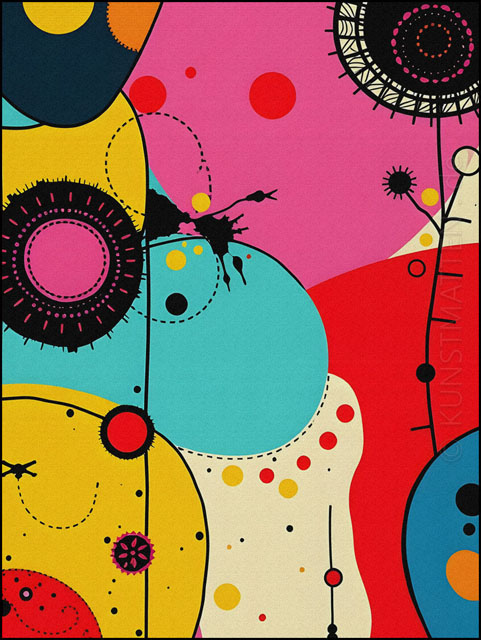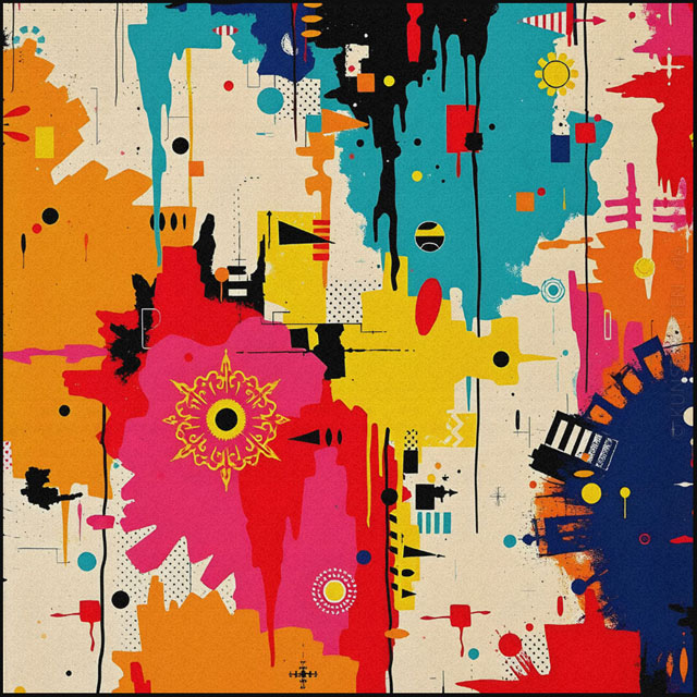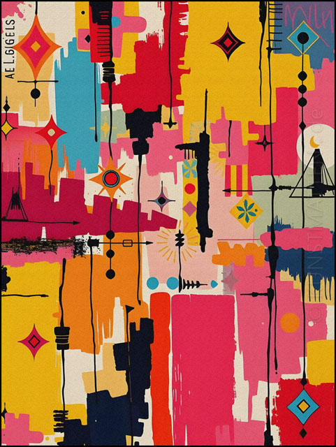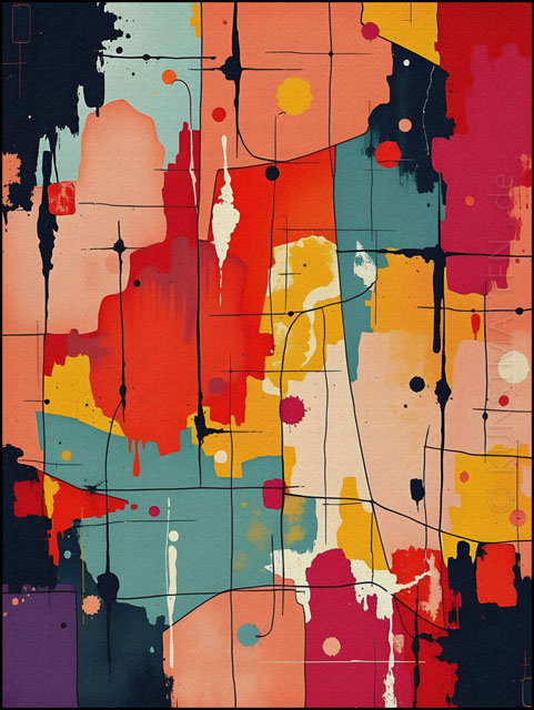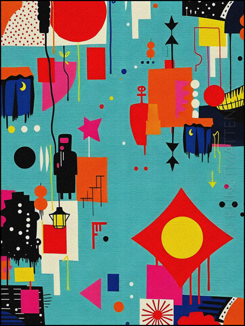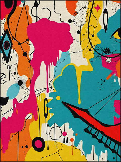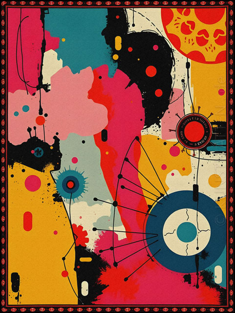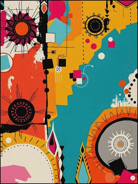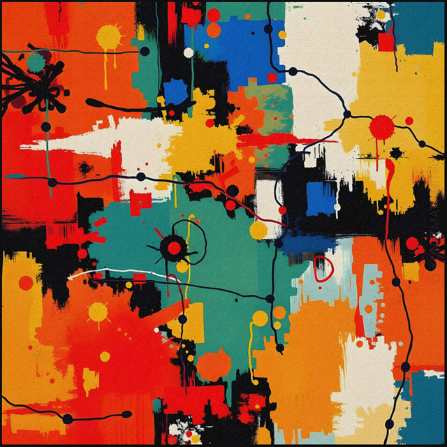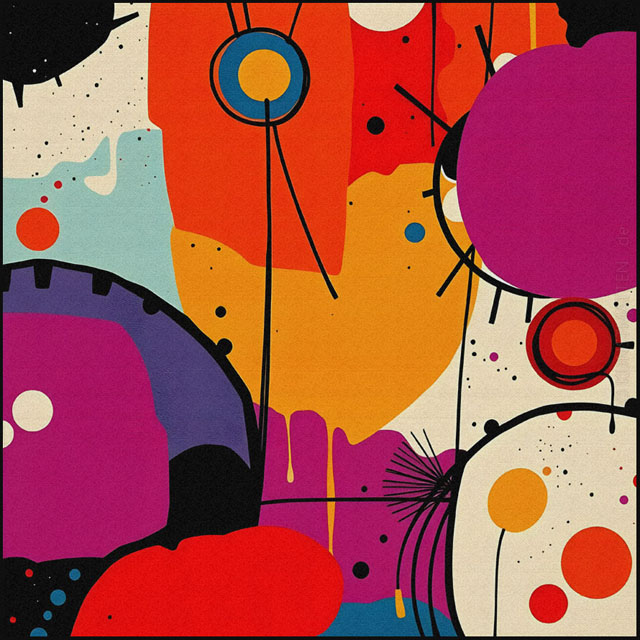 Modern Art ist eine bunte Mischung mit verschiedenen Elemente der abstrakten Malerei, des Futurismo und der Popart-Kunst.