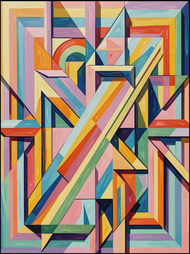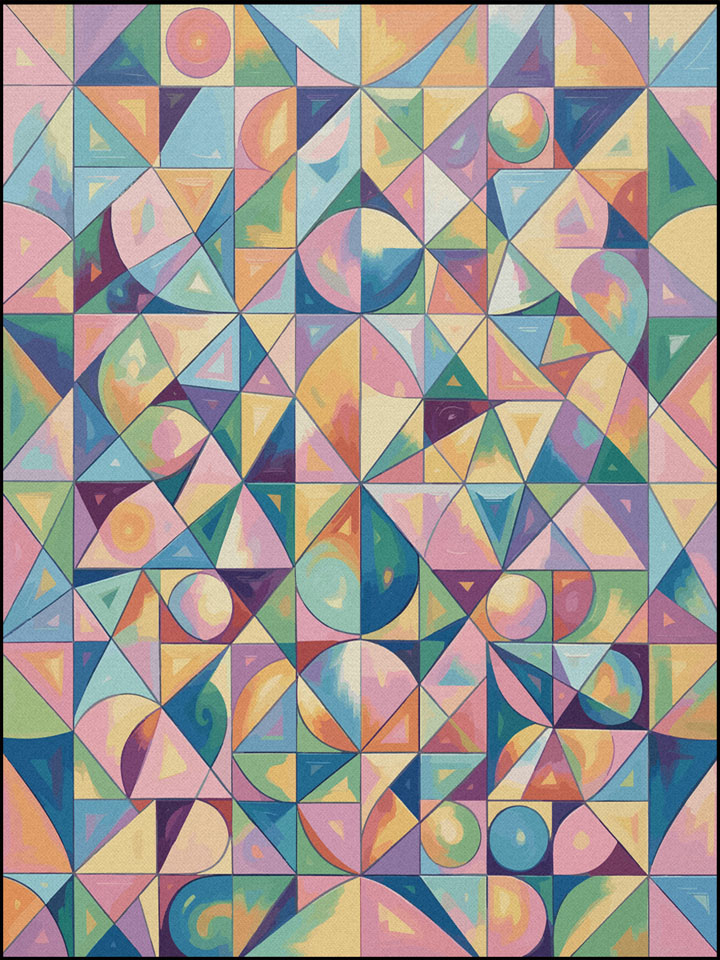 Bunte, klar strukturierte Muster dienen als ideale Basismotive, ergänzt durch stilisierte Tierabbildungen in lebendigen Farben. Musik, Literatur und Tierwelt zu einem ausdrucksstarken Statement vereint.