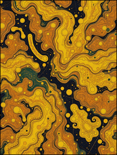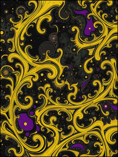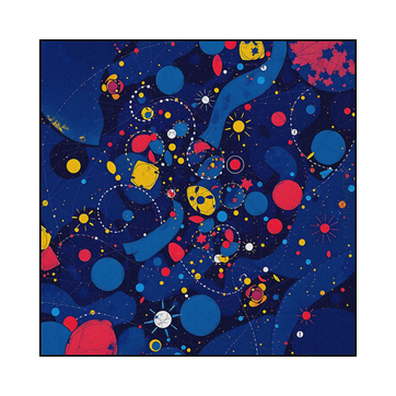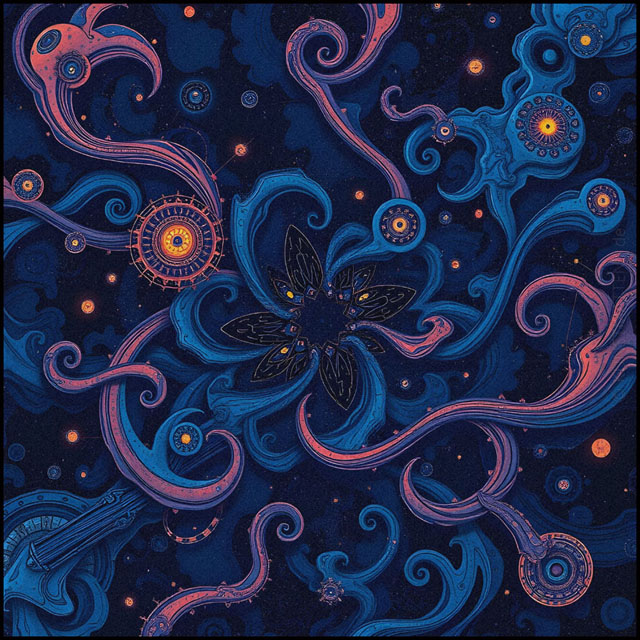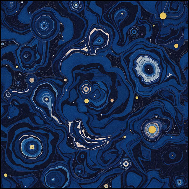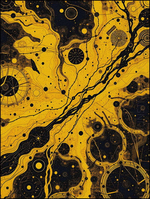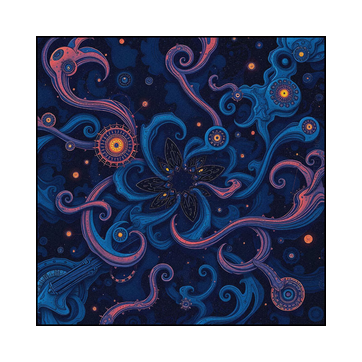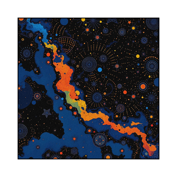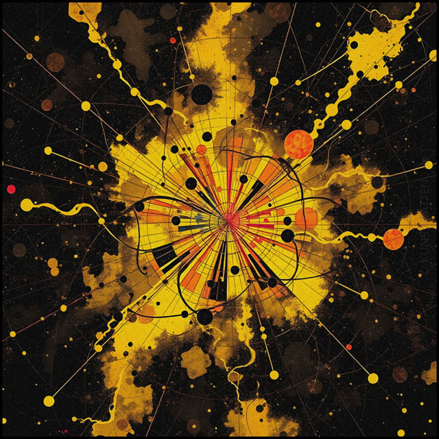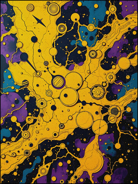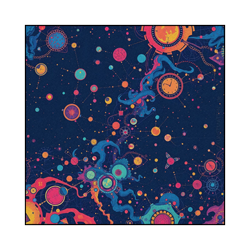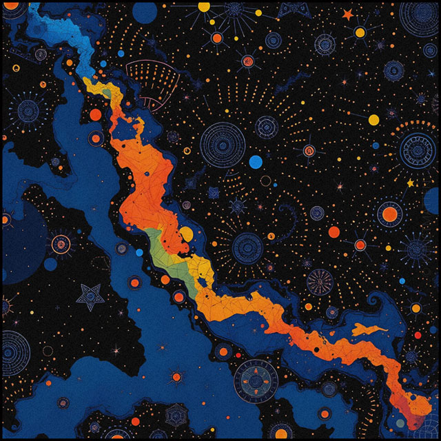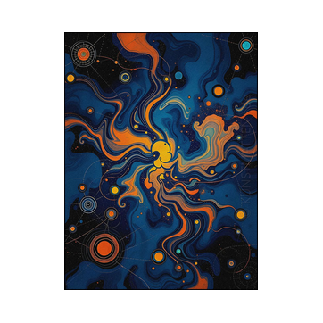 Abstrakte Darstellungen des Universums als faszinierende Basismuster. Ergänzt durch Popart-Grafiken der „Frucht-Planeten“ – verspielt, bunt und kosmisch kreativ.