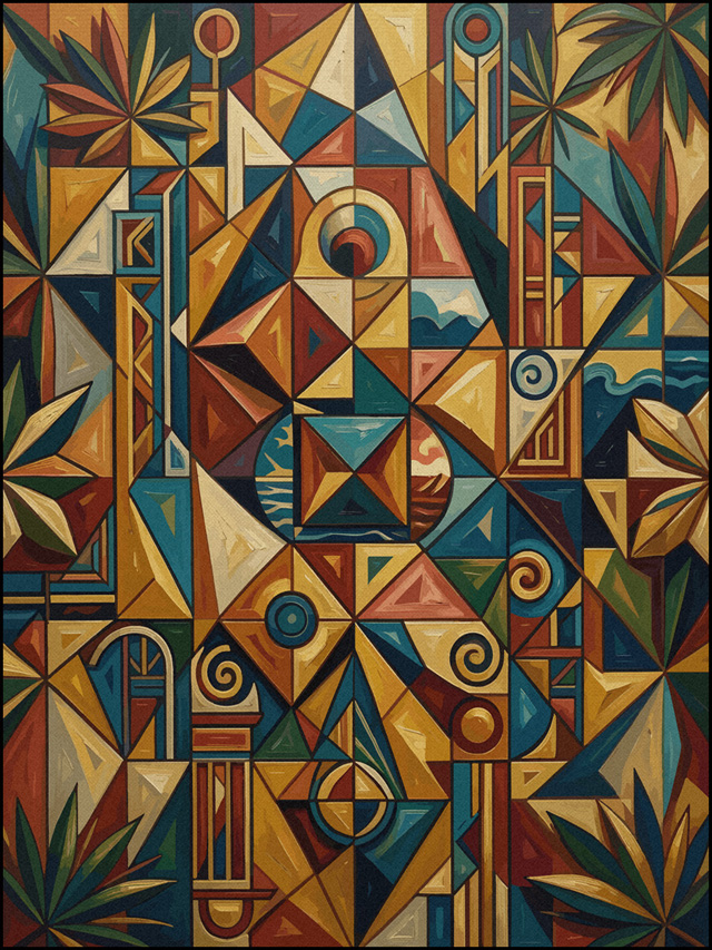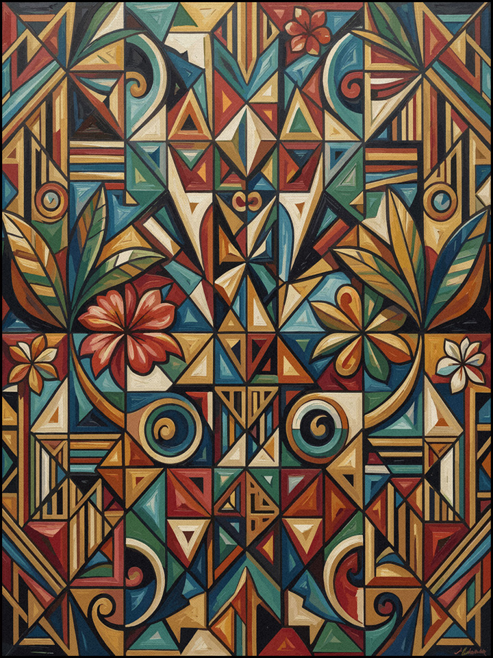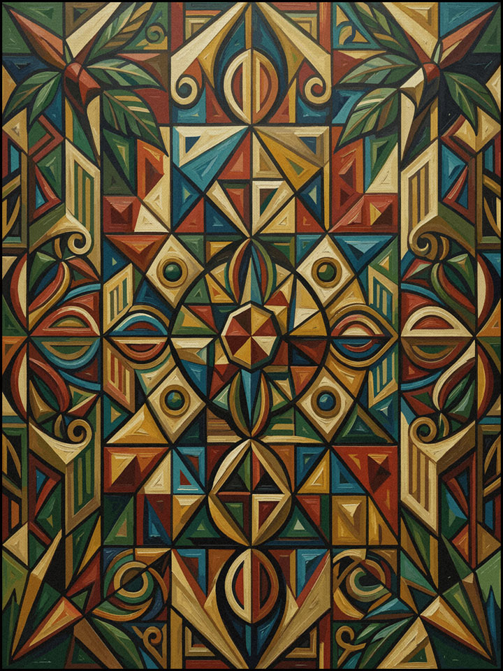 Abstrakte Darstellungen als Basismuster. Ergänzt durch Popart-Grafiken der „Gaben der Erde“ – erdverbunden, farbstark und organisch inspiriert.